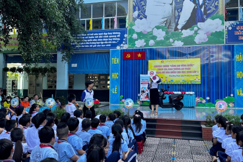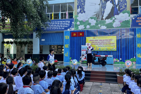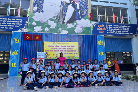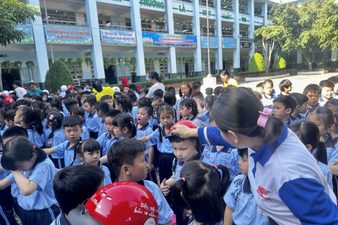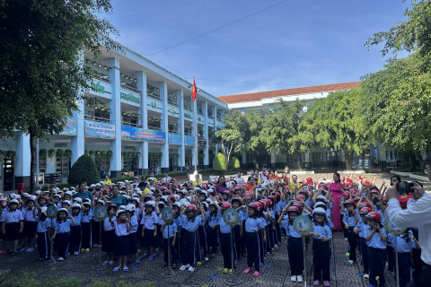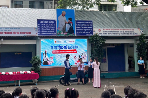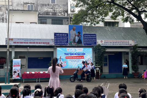358 nón bảo hiểm cho các em học sinh lớp 1 trường Tiểu Học Trần Văn Ơn - phường Đông Hưng Thuận.