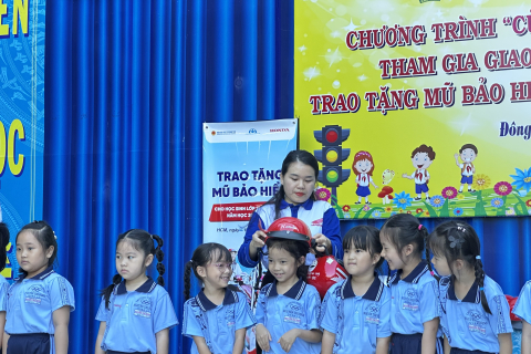 234 nón bảo hiểm cho các em học sinh lớp 1 trường Tiểu Học Nguyễn Thị Minh Khai - phường Đông Hưng Thuận;